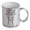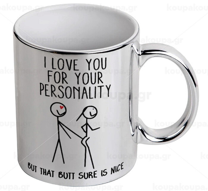 I Love you for your personality, Κούπα κεραμική, ασημένια καθρέπτης, 330ml
