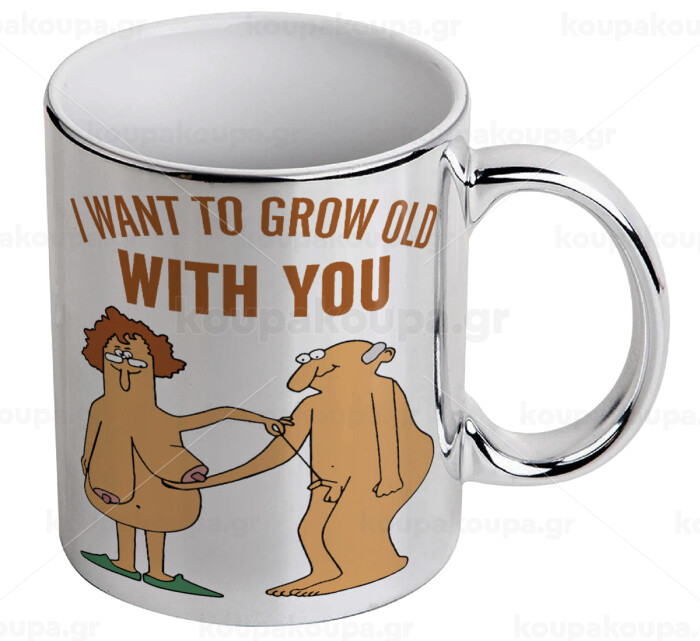 I want to grow old with you, Κούπα κεραμική, ασημένια καθρέπτης, 330ml