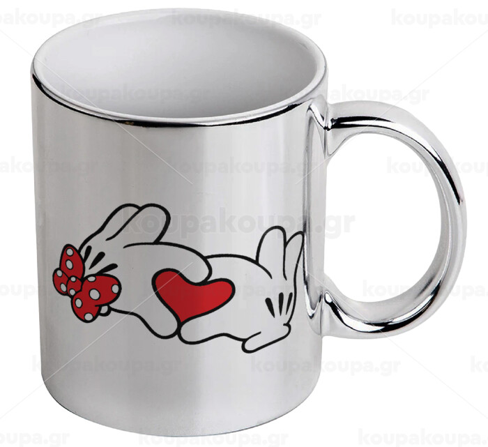 Love hands, Κούπα κεραμική, ασημένια καθρέπτης, 330ml