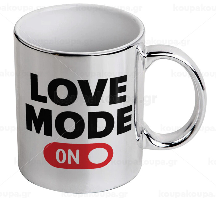LOVE MODE ON, Κούπα κεραμική, ασημένια καθρέπτης, 330ml