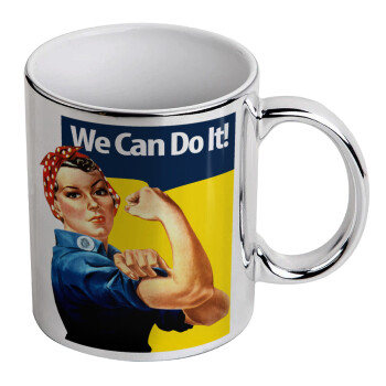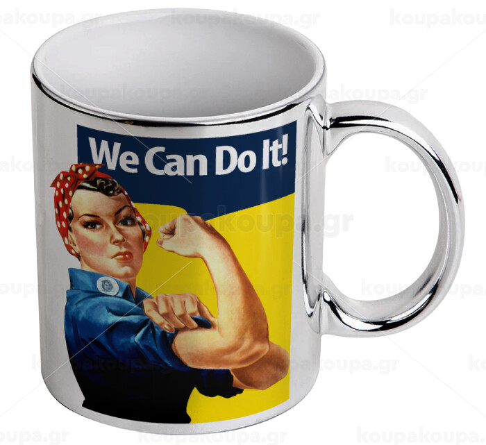 Rosie we can do it!, Κούπα κεραμική, ασημένια καθρέπτης, 330ml