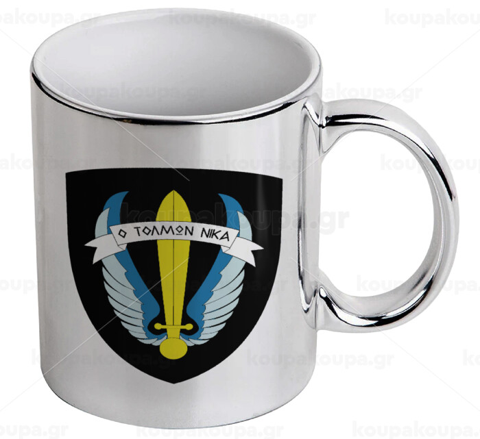 Έμβλημα Μονάδων Καταδρομών Ο Τολμων Νικα - Λοκ, Κούπα κεραμική, ασημένια καθρέπτης, 330ml