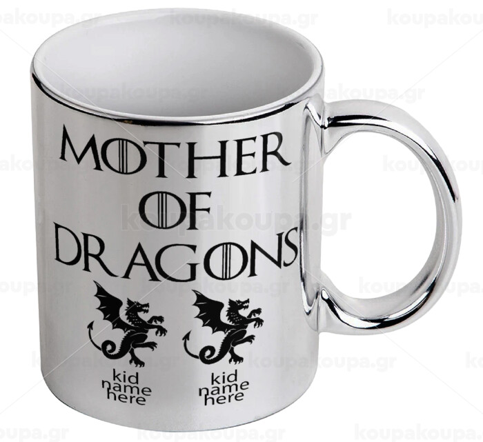 GOT, Mother of Dragons (με ονόματα παιδικά), Κούπα κεραμική, ασημένια καθρέπτης, 330ml