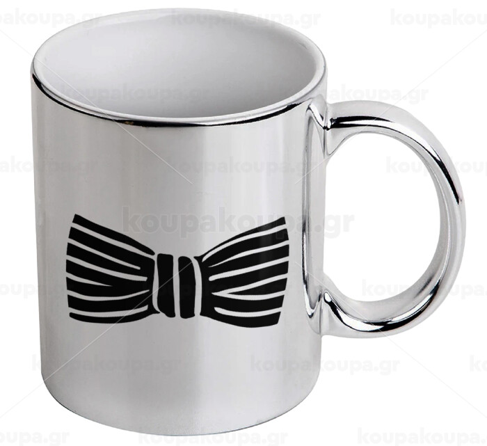 Bow tie, Κούπα κεραμική, ασημένια καθρέπτης, 330ml