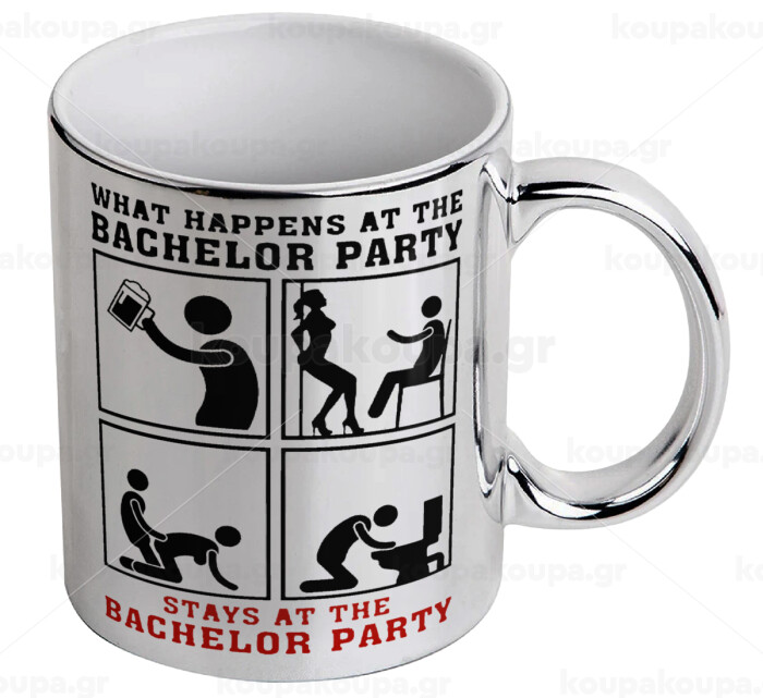 What happens at the bachelor party, stays at the bachelor party!, Κούπα κεραμική, ασημένια καθρέπτης, 330ml