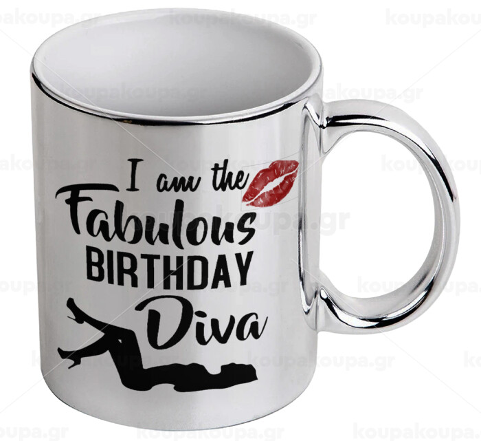 I am the fabulous Birthday Diva, Κούπα κεραμική, ασημένια καθρέπτης, 330ml