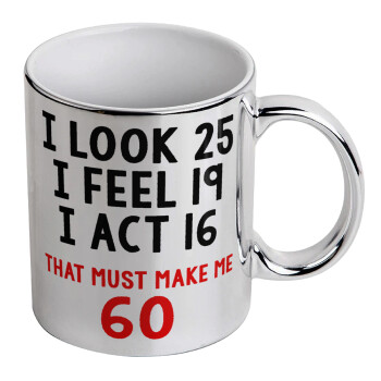 I look, i feel, i act..., Κούπα κεραμική, ασημένια καθρέπτης, 330ml