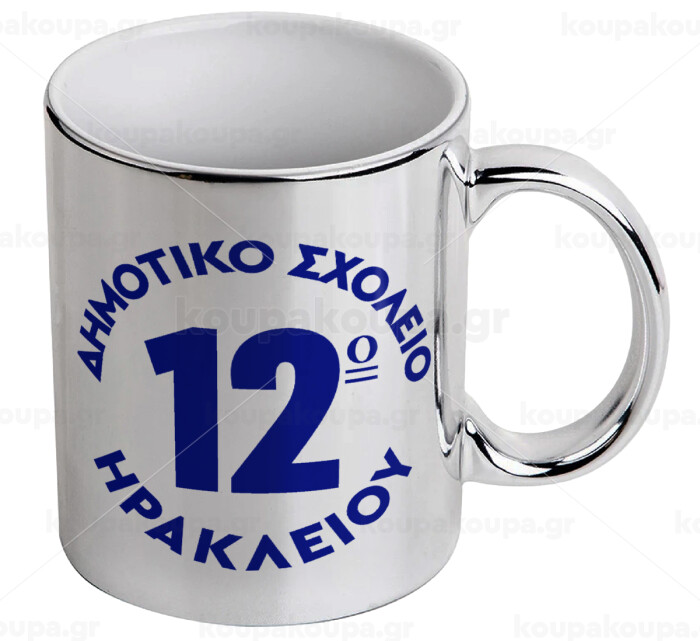Έμβλημα Σχολικό λευκή, Κούπα κεραμική, ασημένια καθρέπτης, 330ml