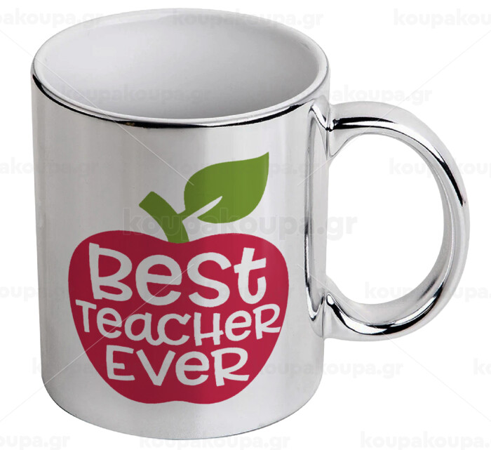 best teacher ever, apple!, Κούπα κεραμική, ασημένια καθρέπτης, 330ml