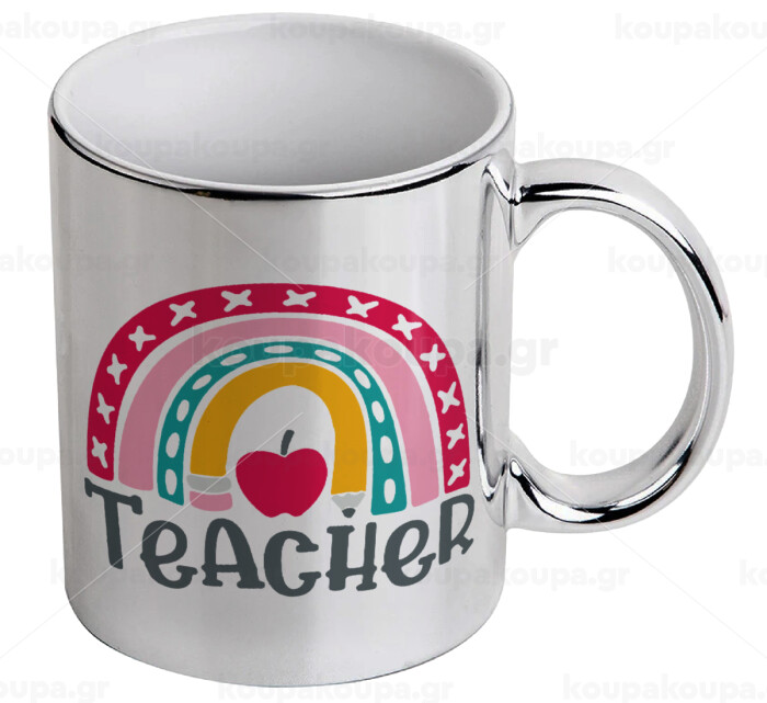 Rainbow teacher, Κούπα κεραμική, ασημένια καθρέπτης, 330ml
