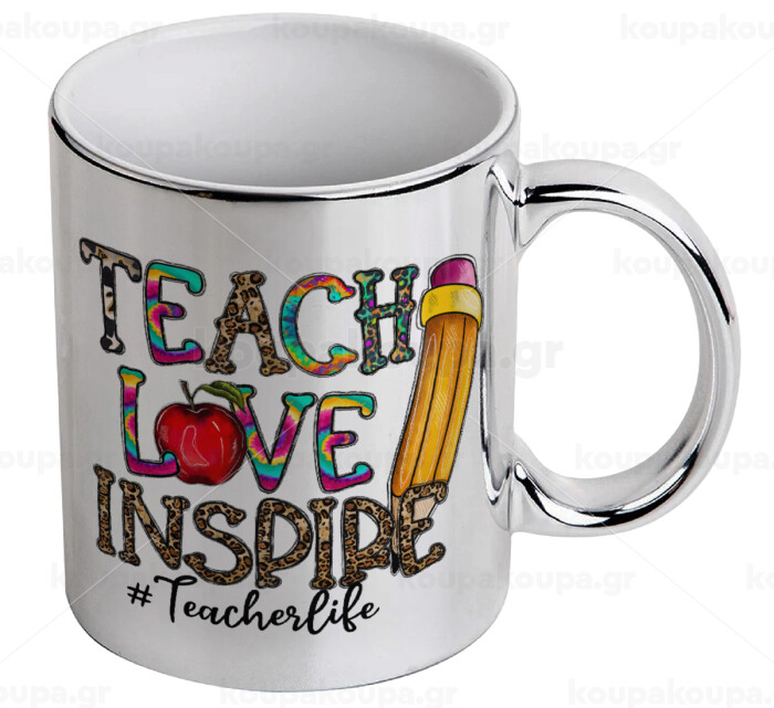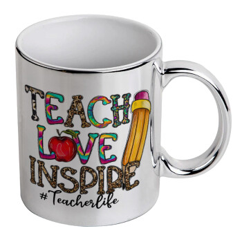 Teach, Love, Inspire, Κούπα κεραμική, ασημένια καθρέπτης, 330ml