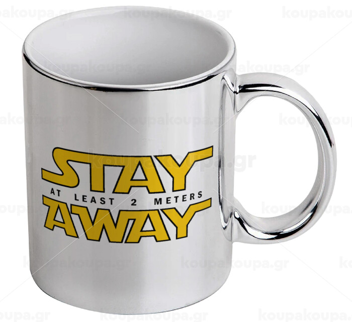 Stay Away, Κούπα κεραμική, ασημένια καθρέπτης, 330ml