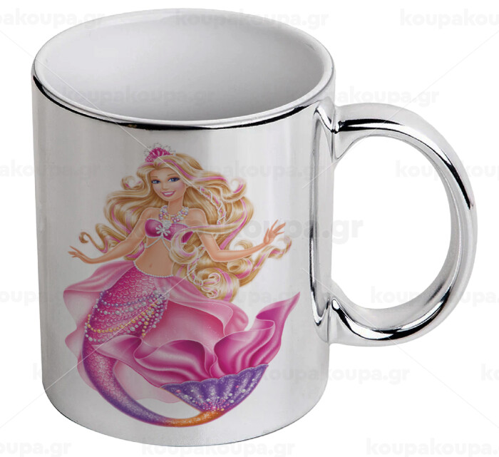 Barbie γοργόνα μπλε, Κούπα κεραμική, ασημένια καθρέπτης, 330ml