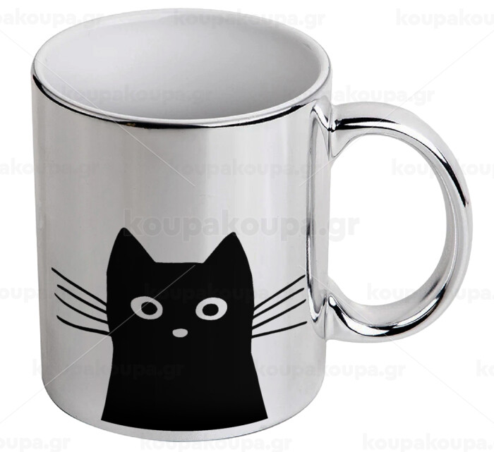 Μαύρη γάτα, Κούπα κεραμική, ασημένια καθρέπτης, 330ml