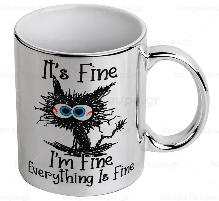 Cat, It's Fine I'm Fine Everything Is Fine, Κούπα κεραμική, ασημένια καθρέπτης, 330ml