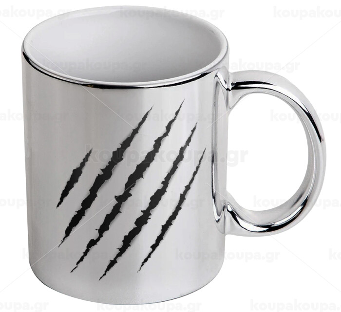 Claw scratch, Κούπα κεραμική, ασημένια καθρέπτης, 330ml
