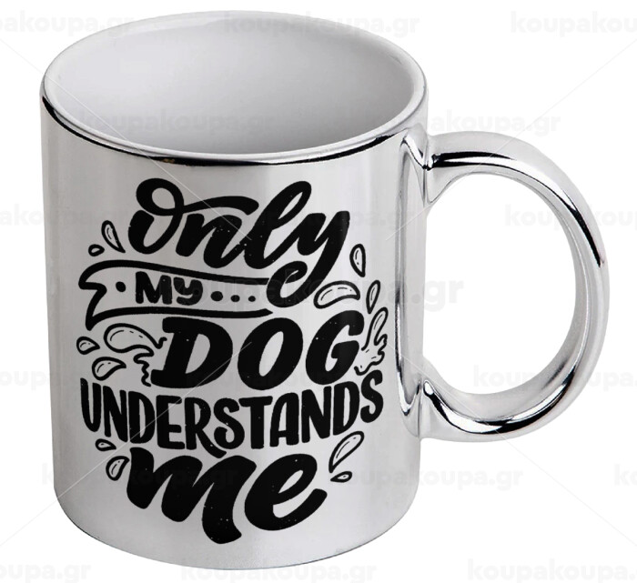 Only my DOG, understands me, Κούπα κεραμική, ασημένια καθρέπτης, 330ml