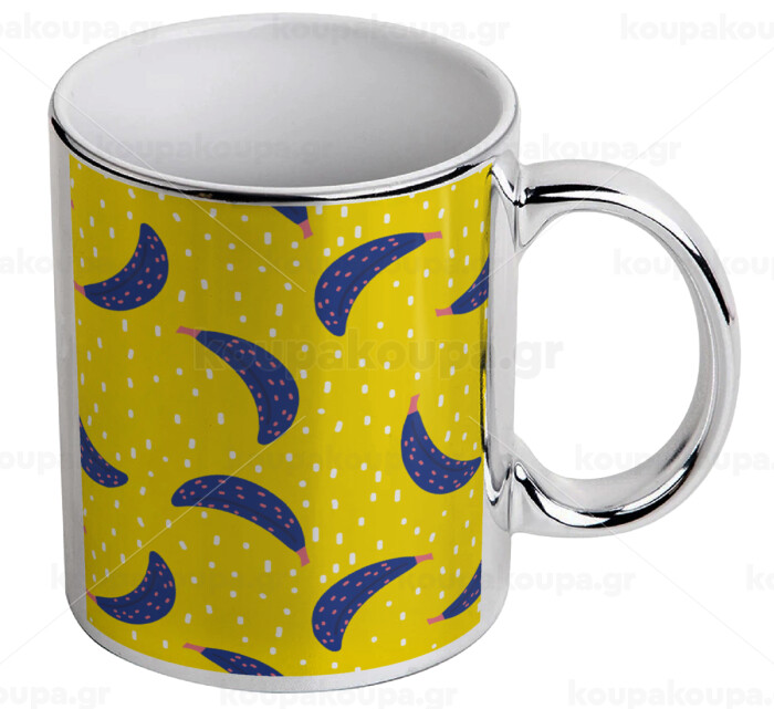 Yellow seamless with blue bananas, Κούπα κεραμική, ασημένια καθρέπτης, 330ml