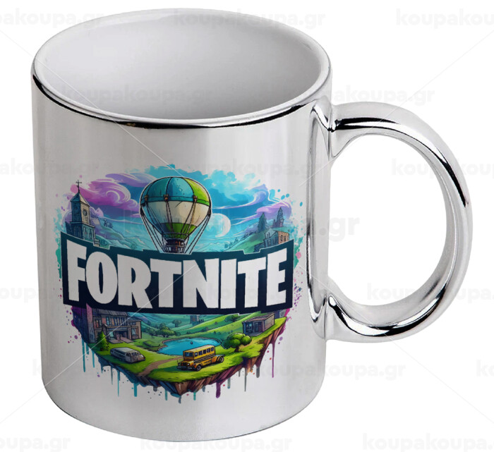 Fortnite land, Κούπα κεραμική, ασημένια καθρέπτης, 330ml