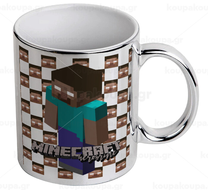 Minecraft herobrine, Κούπα κεραμική, ασημένια καθρέπτης, 330ml