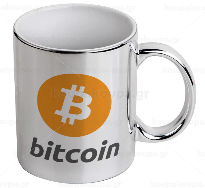 Bitcoin, Κούπα κεραμική, ασημένια καθρέπτης, 330ml