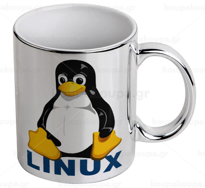 Linux, Κούπα κεραμική, ασημένια καθρέπτης, 330ml