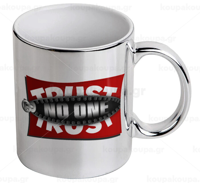Trust no one... (zipper), Κούπα κεραμική, ασημένια καθρέπτης, 330ml