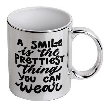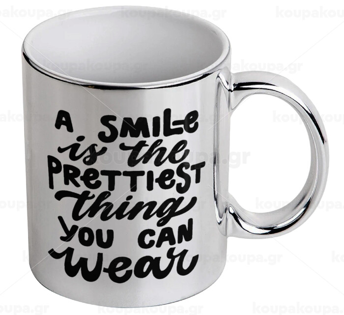 A smile is the prettiest thing you can wear, Κούπα κεραμική, ασημένια καθρέπτης, 330ml