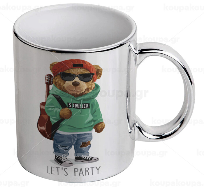 Let's Party Bear, Κούπα κεραμική, ασημένια καθρέπτης, 330ml