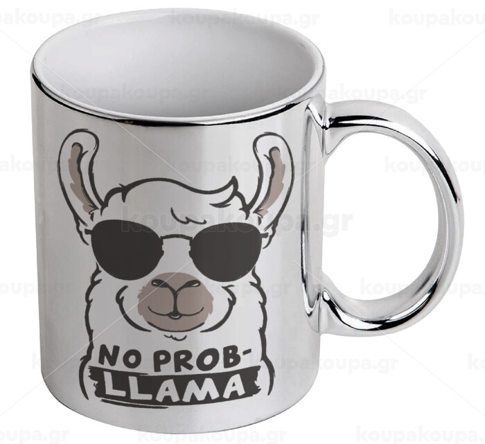 No Prob Llama, Κούπα κεραμική, ασημένια καθρέπτης, 330ml
