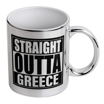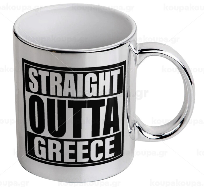 Straight Outta greece, Κούπα κεραμική, ασημένια καθρέπτης, 330ml