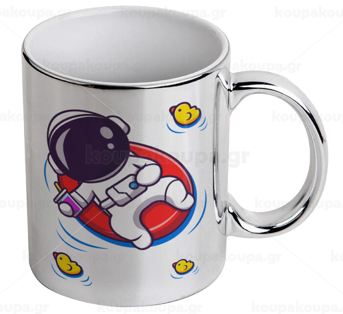 Μικρός αστροναύτης θάλασσα, Κούπα κεραμική, ασημένια καθρέπτης, 330ml