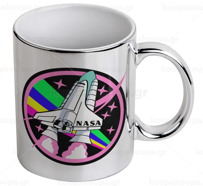 NASA pink, Κούπα κεραμική, ασημένια καθρέπτης, 330ml