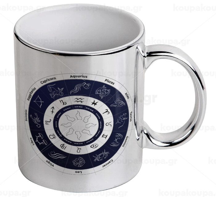 Ζωδιακός κύκλος, Κούπα κεραμική, ασημένια καθρέπτης, 330ml