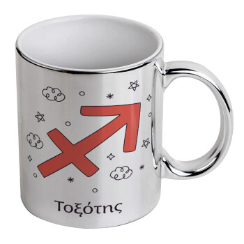 Ζώδια Τοξότης, Κούπα κεραμική, ασημένια καθρέπτης, 330ml
