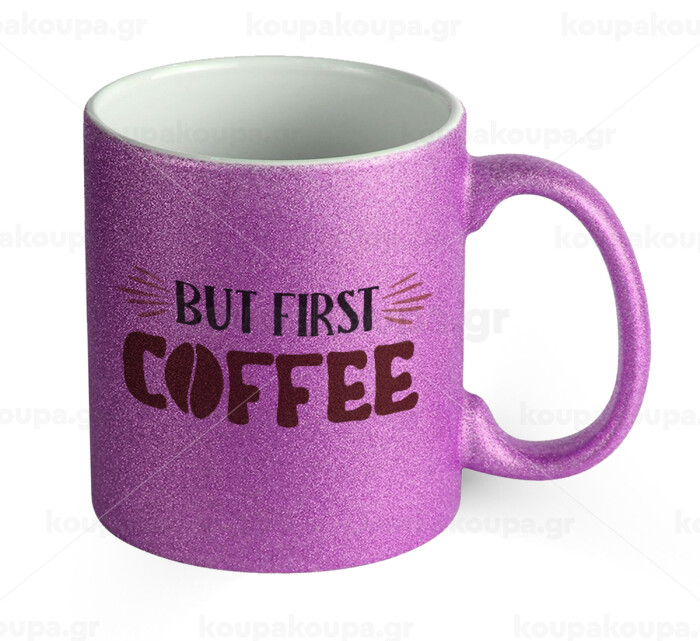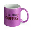But first Coffee, Κούπα Μωβ Glitter που γυαλίζει, κεραμική, 330ml