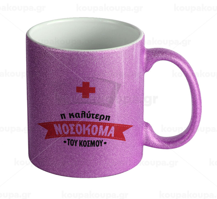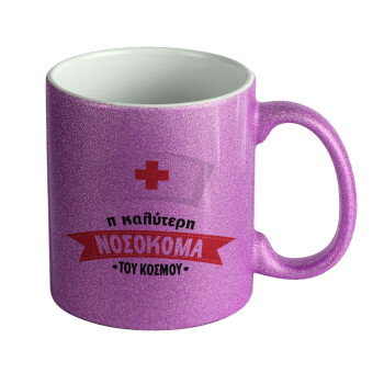 Η καλύτερη νοσοκόμα του κόσμου!!!, Κούπα Μωβ Glitter που γυαλίζει, κεραμική, 330ml