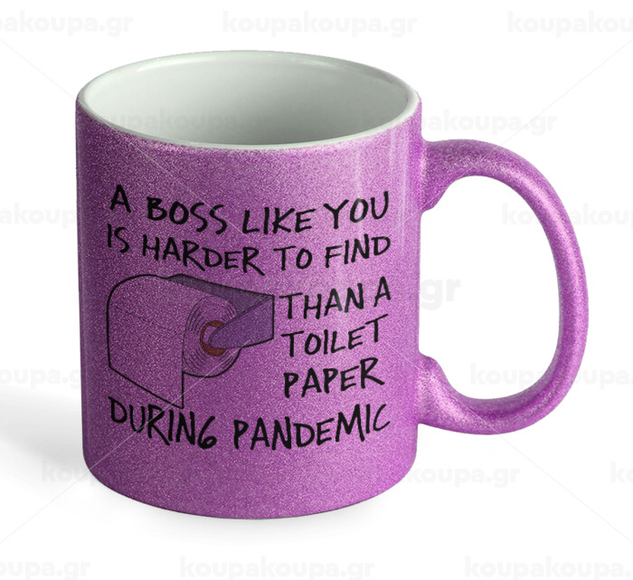 A boss like you is harder to find, than a toilet paper during pandemic, Κούπα Μωβ Glitter που γυαλίζει, κεραμική, 330ml