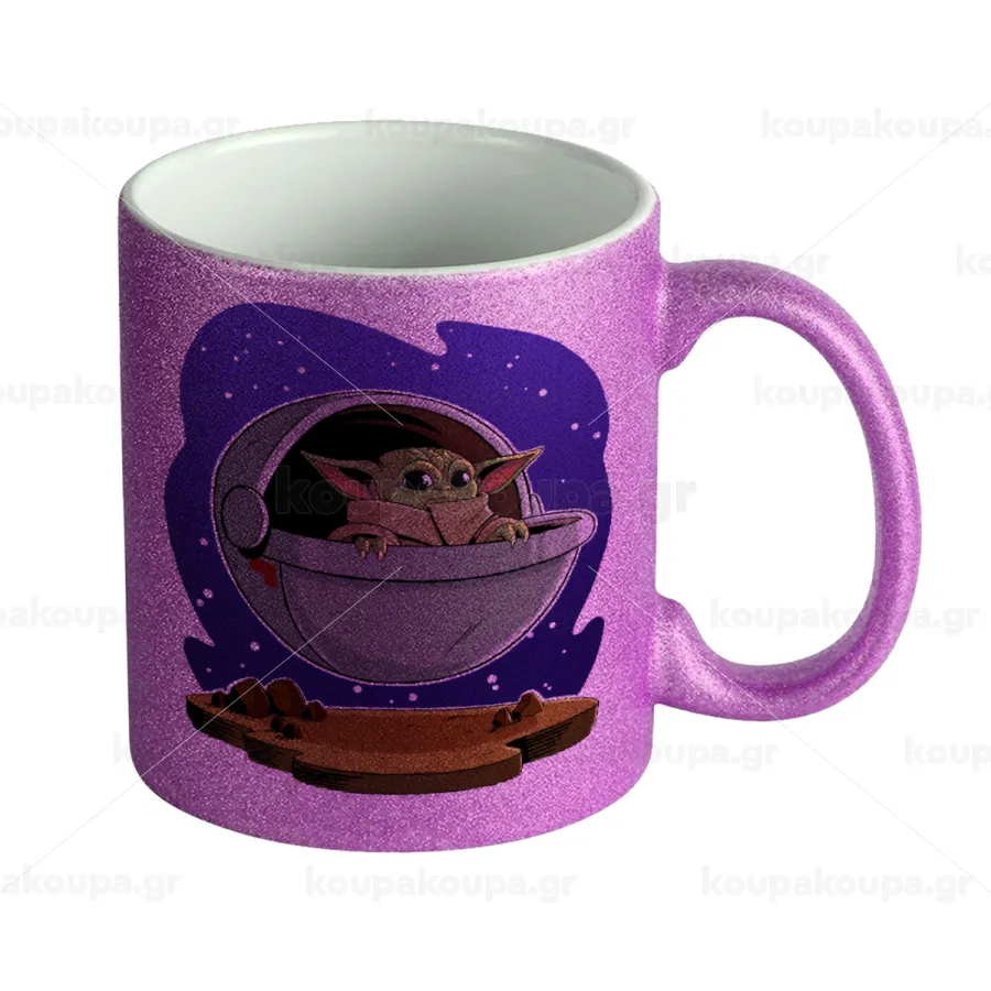 Baby Yoda mandalorian, Κούπα Μωβ Glitter που γυαλίζει, κεραμική, 330ml