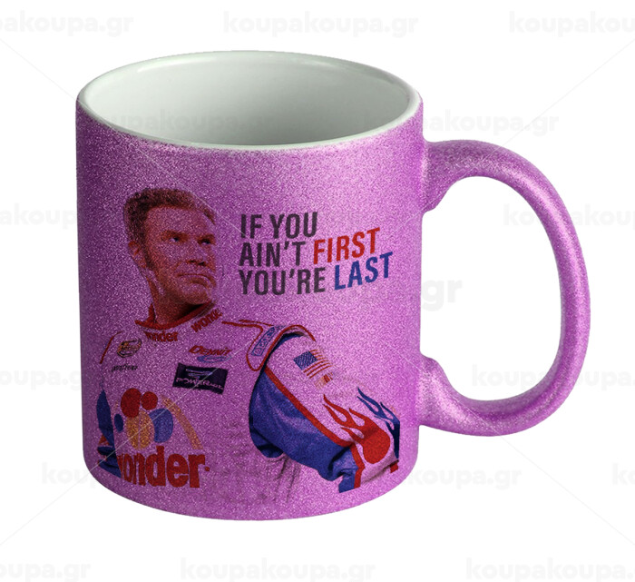 If You Ain't First You're Last Ricky Bobby, Talladega Nights, Κούπα Μωβ Glitter που γυαλίζει, κεραμική, 330ml