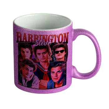 Steve Harrington, Stranger Things, Κούπα Μωβ Glitter που γυαλίζει, κεραμική, 330ml