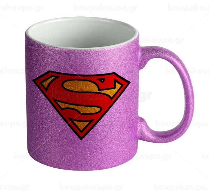 Superman vintage, Κούπα Μωβ Glitter που γυαλίζει, κεραμική, 330ml