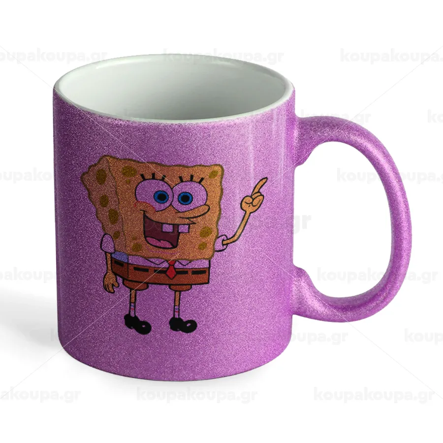 Μπομπ Σφουγγαράκης character, Κούπα Μωβ Glitter που γυαλίζει, κεραμική, 330ml