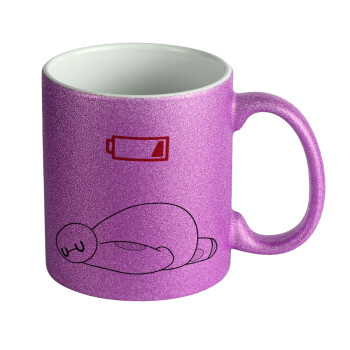 Baymax battery low, Κούπα Μωβ Glitter που γυαλίζει, κεραμική, 330ml