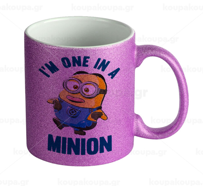 I'm one in a minion, Κούπα Μωβ Glitter που γυαλίζει, κεραμική, 330ml