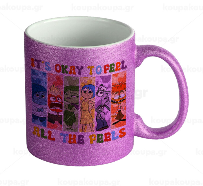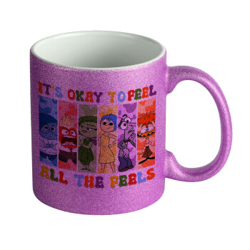Inside Out It's Okay To Feel All The Feels , Κούπα Μωβ Glitter που γυαλίζει, κεραμική, 330ml