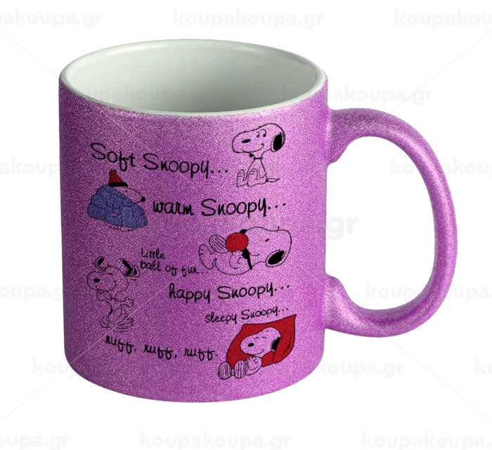 Snoopy manual, Κούπα Μωβ Glitter που γυαλίζει, κεραμική, 330ml