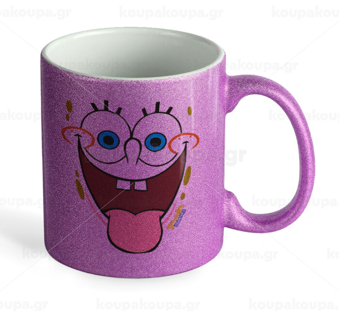 Μπομπ Σφουγγαράκης χαμόγελο, Κούπα Μωβ Glitter που γυαλίζει, κεραμική, 330ml