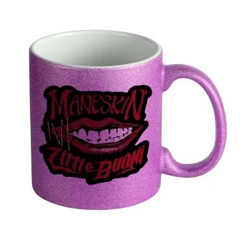 Maneskin lips, Κούπα Μωβ Glitter που γυαλίζει, κεραμική, 330ml