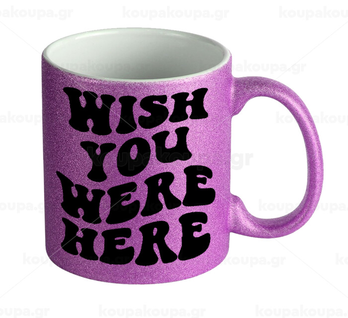 Wish you were here, Κούπα Μωβ Glitter που γυαλίζει, κεραμική, 330ml